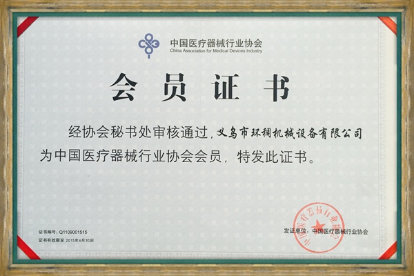 中國(guó)醫(yī)療器械行業(yè)協(xié)會(huì)會(huì)員證書