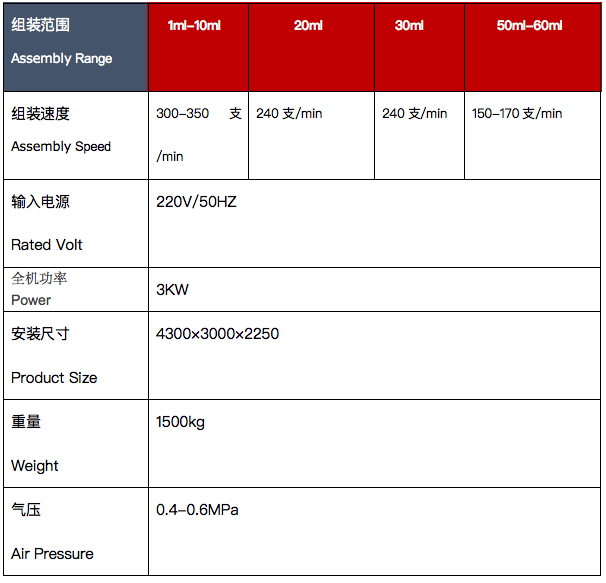 組裝機速度提升,1ml-10ml從每分鐘220只提升到了每分鐘350只。各個部位精度提高
